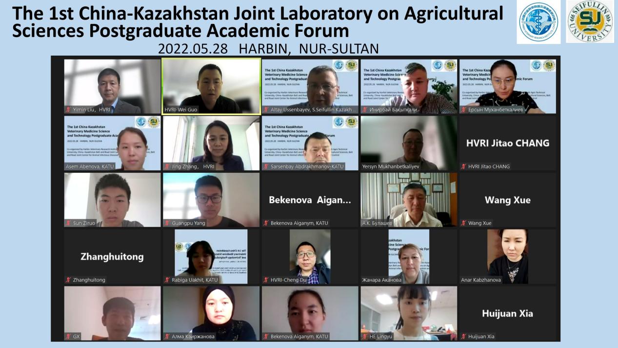 在中國(guó)農(nóng)業(yè)科學(xué)院建院65周年之際,為深入學(xué)習(xí)貫徹習(xí)近平總書記“一帶一路”倡議和全國(guó)研究生教育會(huì)議精神,促進(jìn)中國(guó)-哈薩克斯坦農(nóng)業(yè)科學(xué)聯(lián)合實(shí)驗(yàn)室(中哈聯(lián)合實(shí)驗(yàn)室)學(xué)術(shù)交流,營(yíng)造合作創(chuàng)新、積極探索的學(xué)術(shù)氛圍,5月28日,哈爾濱獸醫(yī)研究所聯(lián)合賽福林哈薩克農(nóng)業(yè)技術(shù)大學(xué)(賽農(nóng)大)以線上會(huì)議方式舉辦第一屆中哈聯(lián)合實(shí)驗(yàn)室研究生學(xué)術(shù)論壇。