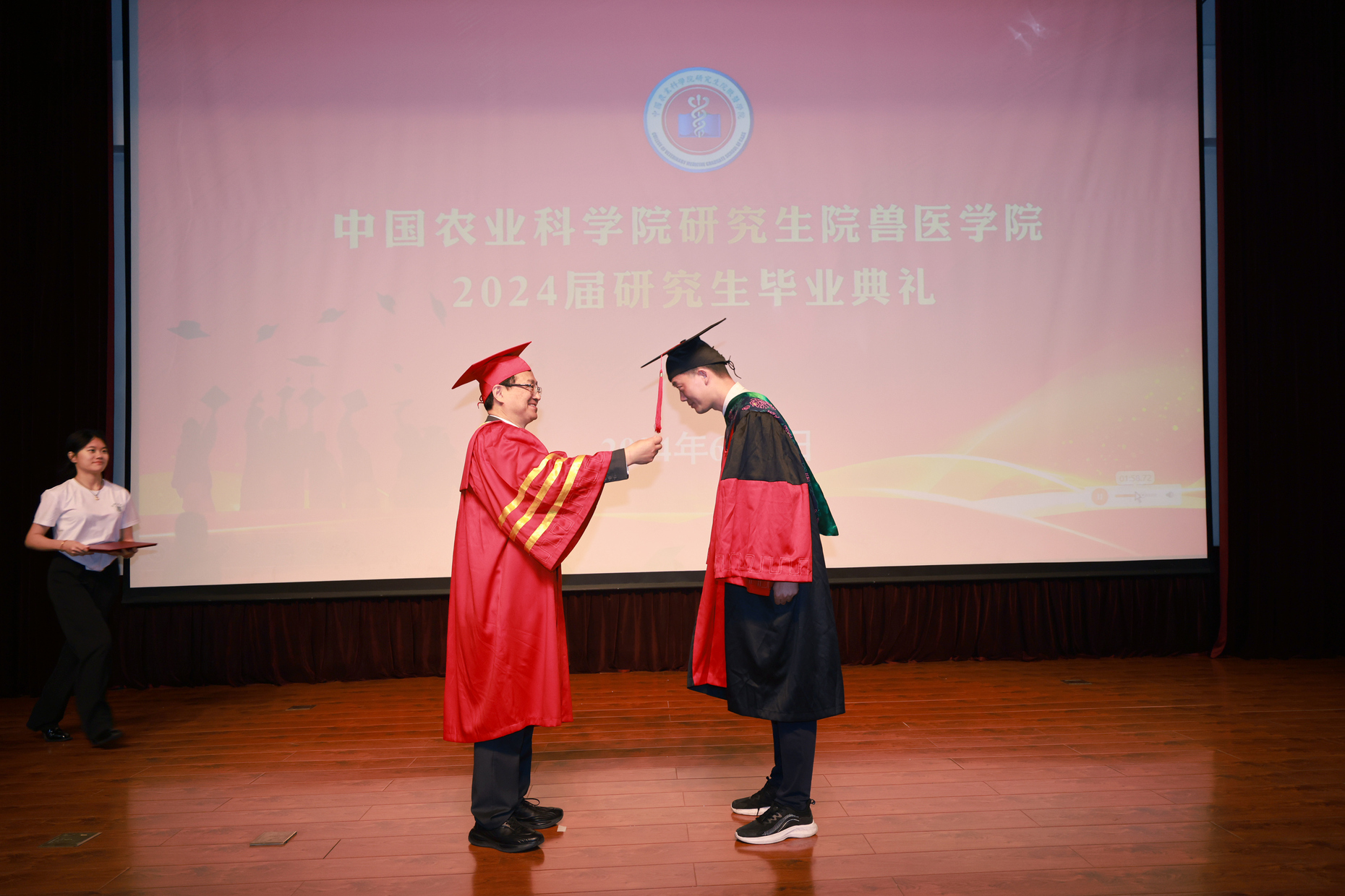 6月6日,中國農業(yè)科學院研究生院獸醫(yī)學院2024屆研究生畢業(yè)典禮在哈爾濱獸醫(yī)研究所綜合樓1058報告廳舉行。研究生院書記姜梅林,獸醫(yī)學院院長、哈獸研所長步志高,副所長孫百明,紀委書記周亮,副所長王曉鈞,副所長李呈軍,黨委委員、黨辦主任張曉鵬,黑龍江北大荒牧業(yè)集團有限公司董事長王玉起、副總經理金勝柱,廣東溫氏大華農生物科技有限公司副總裁康孟佼,北京金諾百泰生物技術公司經理劉鶴,哈爾濱東方基因生物制品有限公司總經理朱美子以及研究所職能部門負責人和創(chuàng)新團隊首席、班主任、導師、研究生300余人參加。畢業(yè)典禮由獸醫(yī)學院常務副院長劉益民主持。