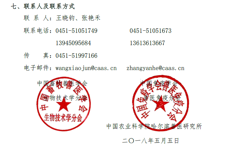 中國(guó)畜牧獸醫(yī)學(xué)會(huì)畜牧獸醫(yī)生物技術(shù)學(xué)分會(huì)暨中國(guó)免疫學(xué)會(huì)獸醫(yī)免疫分會(huì)第十三次學(xué)術(shù)研討會(huì)通知