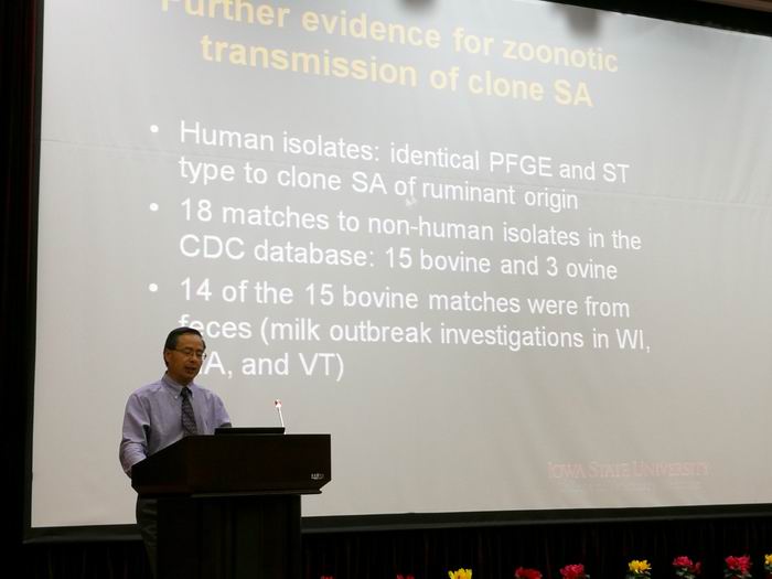 7月18日,哈爾濱獸醫(yī)研究所第七期凌風講堂開講,應我所所長、重要人獸共患與烈性外來病團隊首席科學家步志高研究員的邀請,美國微生物科學院院士、美國愛荷華州立大學獸醫(yī)學院副院長張啟敬(Qijing Zhang)教授作了題為“Emergence of hypervirulent Campylobacter jejuni: a One Health Challenge”的報告。報告會由步志高研究員主持,所內(nèi)相關老師及學生參加了本次活動。