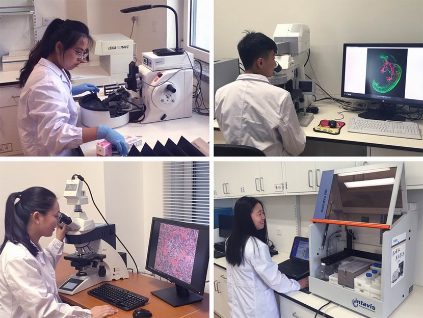 病理學(xué)實(shí)驗(yàn)室共有取得博士學(xué)位的研究人員6人,其中研究員1人,副研究員2人,助理研究員2人,博士后1人。病理技師2人。主要開展高質(zhì)量常規(guī)病理組織切片,提供不同實(shí)驗(yàn)組的差異病變數(shù)據(jù),分析病變差異的產(chǎn)生原因,為研究特定疾病的發(fā)生、發(fā)展及臨床表現(xiàn)提供科學(xué)的理論依據(jù)。在開展的免疫組織化學(xué)方面,由于該技術(shù)具有定位準(zhǔn)確、形態(tài)與功能相結(jié)合的特點(diǎn),對(duì)疾病,尤其是對(duì)腫瘤的診斷、鑒別診斷及發(fā)病機(jī)制的研究提供了強(qiáng)有力的手段。實(shí)驗(yàn)室配備了美國Thermo的全套病理設(shè)備(全自動(dòng)免疫組化儀、全自動(dòng)脫水機(jī)、全自動(dòng)染色機(jī)、全自動(dòng)包埋機(jī)和全自動(dòng)切片機(jī))以及德國Intavis全自動(dòng)原位雜交儀,德國Zeiss共聚焦成像系統(tǒng)和高通量切片掃描系統(tǒng)。同時(shí)承擔(dān)多項(xiàng)國家及省、部級(jí)以上科研項(xiàng)目。共發(fā)表中、英文文章69篇,發(fā)表著作7部。